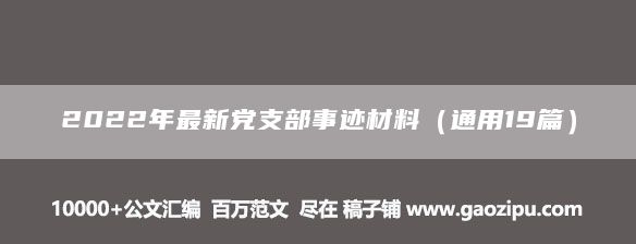 2022年最新党支部事迹材料(通用19篇)