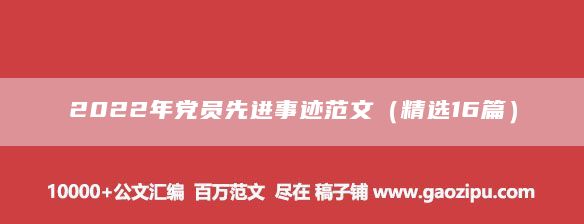 2022年党员先进事迹范文(精选16篇) 稿子汇 www.gaozihui.com