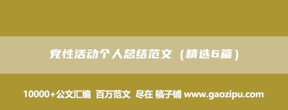 党性活动个人总结范文(精选6篇)