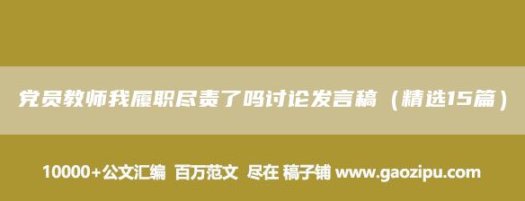 党员教师我履职尽责了吗讨论发言稿(精选15篇) 稿子汇 www.gaozihui.com