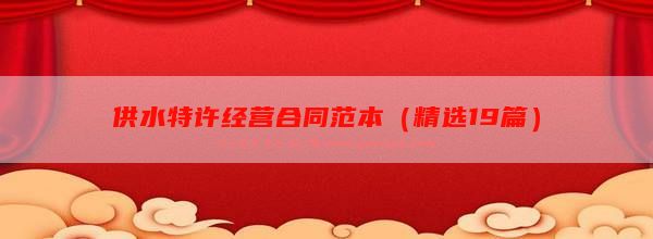 供水特许经营合同范本(精选19篇) 公文汇 www.gongwenhui.com