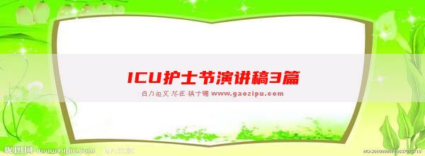 在这充满火热激情的季节,我们又迎来了"5.12国际护士节"。下面是第一范文网小编整理ICU护士节演讲稿,供大家参考! 稿子汇,范文学习文库